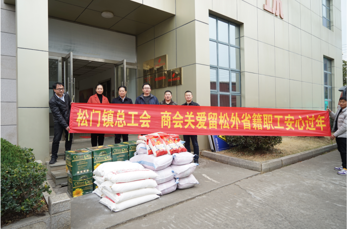 為了解決疫情期間企業留松員工日常生活,松門鎮總工會、商會組織開展了“送溫暖”入企業活動,讓員工度過一個安心溫暖的春節。1月20日,鎮工會主席劉君斌、商會會長梁新方一行人來到風馳公司,送來大米、面粉和食用油。公司執行總裁潘凌杰,工會主席呂曦紅熱情接待。